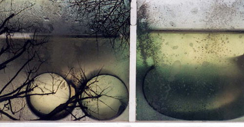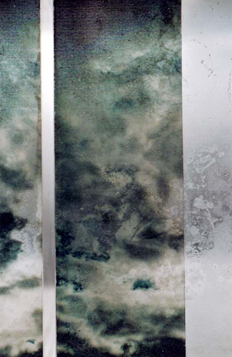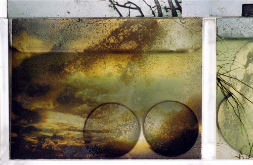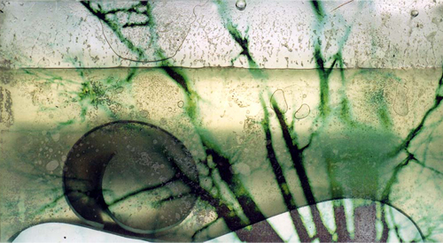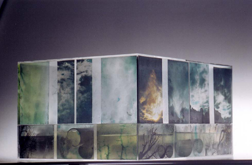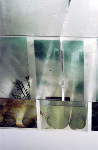 acrylic, printed transparencies, water