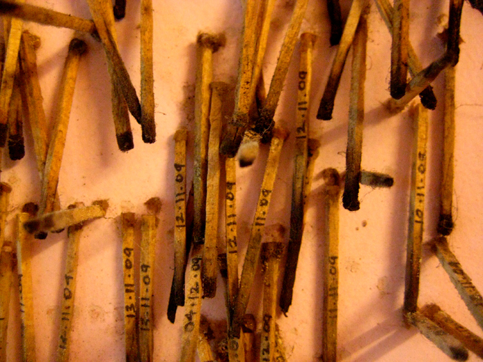 matchsticks on a wall