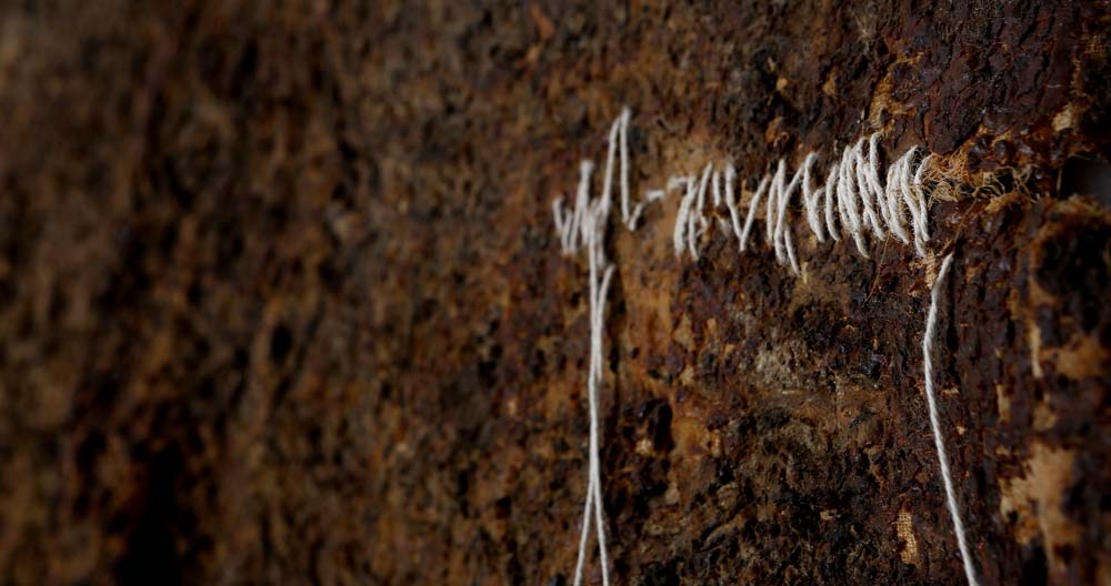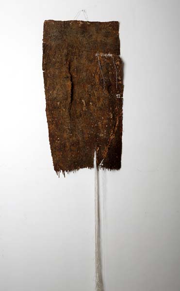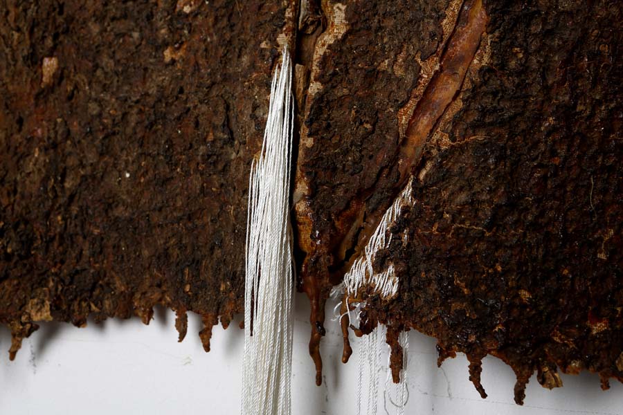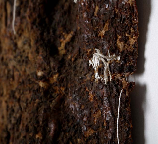 memories xii a series in progress latex, canvas, silk thread, bark and other organic matter 8 ft. x 2.1 ft. 2014 ← Previous ProjectNext Project →